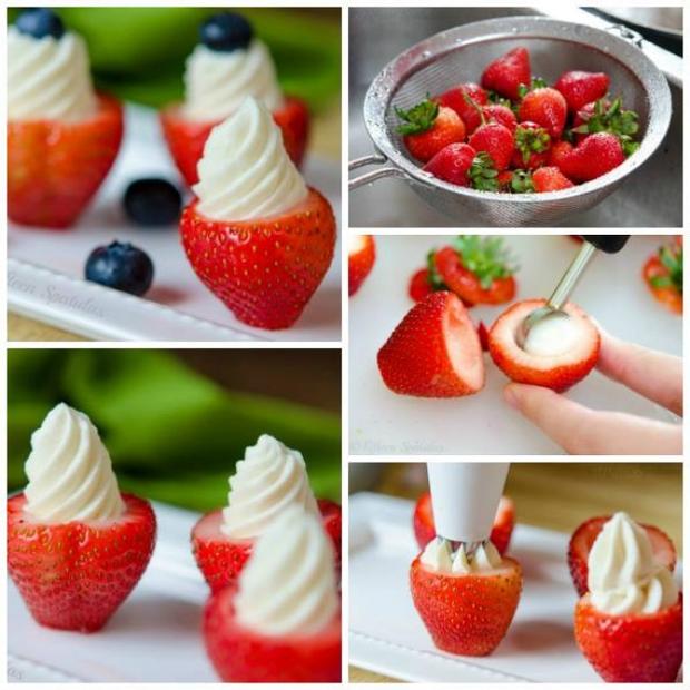Издълбайте сърцевината на ягодата и я напълнете с разбира сметана. Вашият десерт е готов! Снимка: fifteenspatulas.com